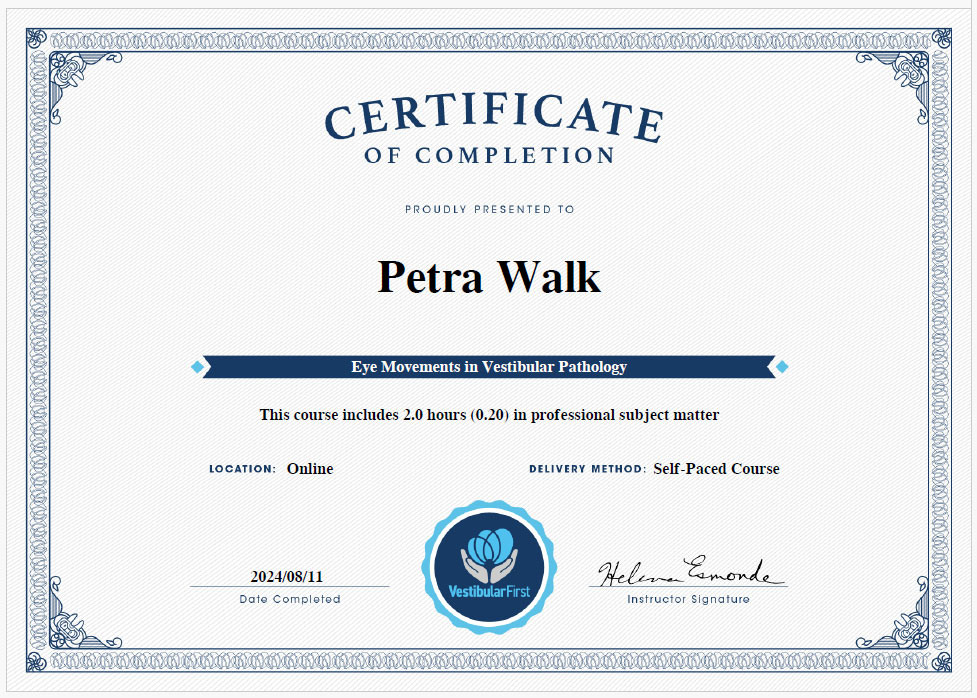 - Vestibuläre Rehabilitation bei Schwindel – mit Prüfung abgeschlossen